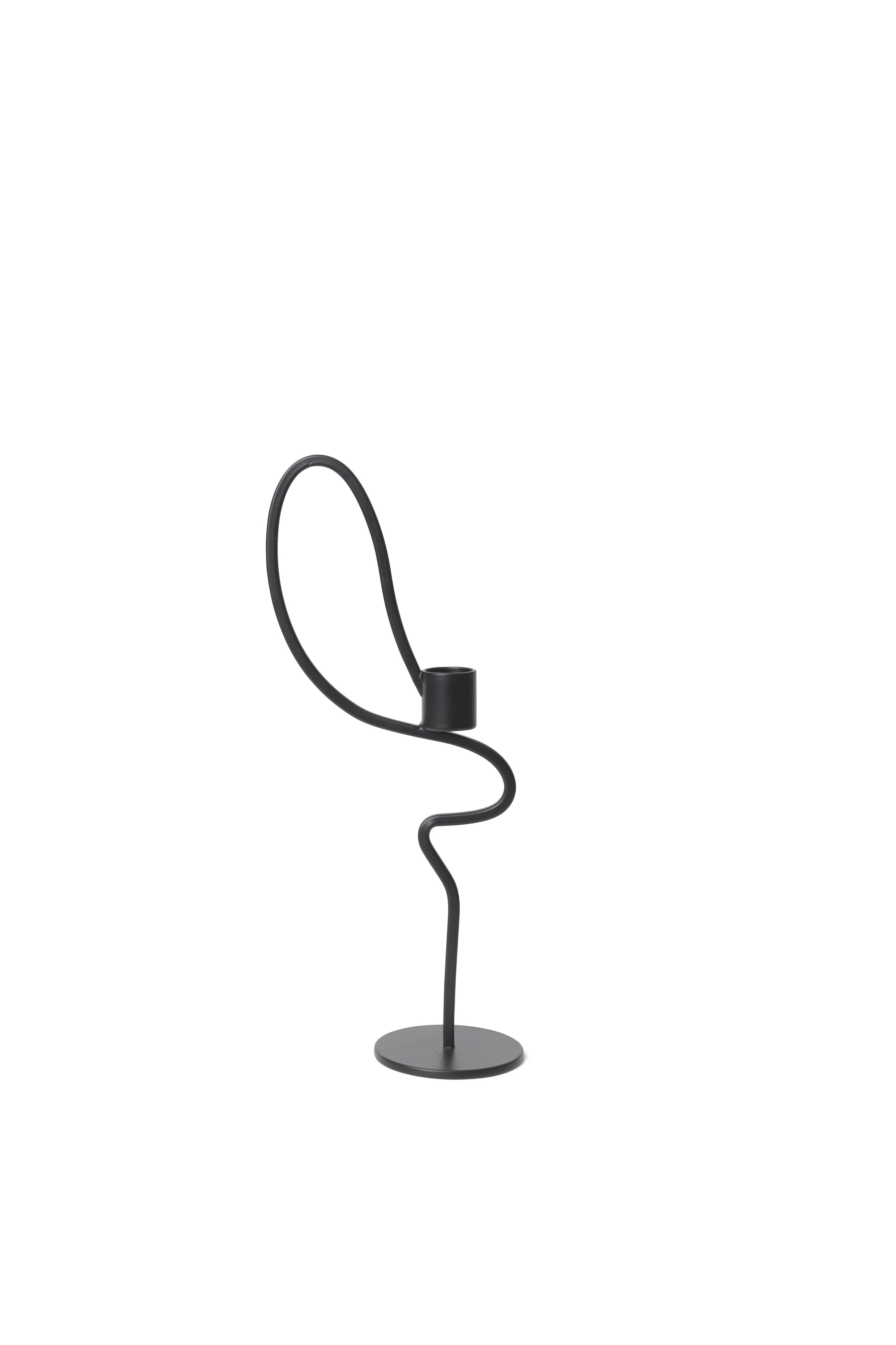 Der Valse-Kerzenständer hat eine fließende und wellenförmige Form, ganz so, als wäre er während des Tanzens erstarrt. Dieses aus pulverbeschichtetem Eisen gefertigte Stück ist von den anmutigen Bewegungen des Walzertanzes inspiriert und hat eine elegante Form mit einem geschwungenen Metallstab, der dazu einlädt, den Kerzenständer zu halten und mit sich zu tragen.