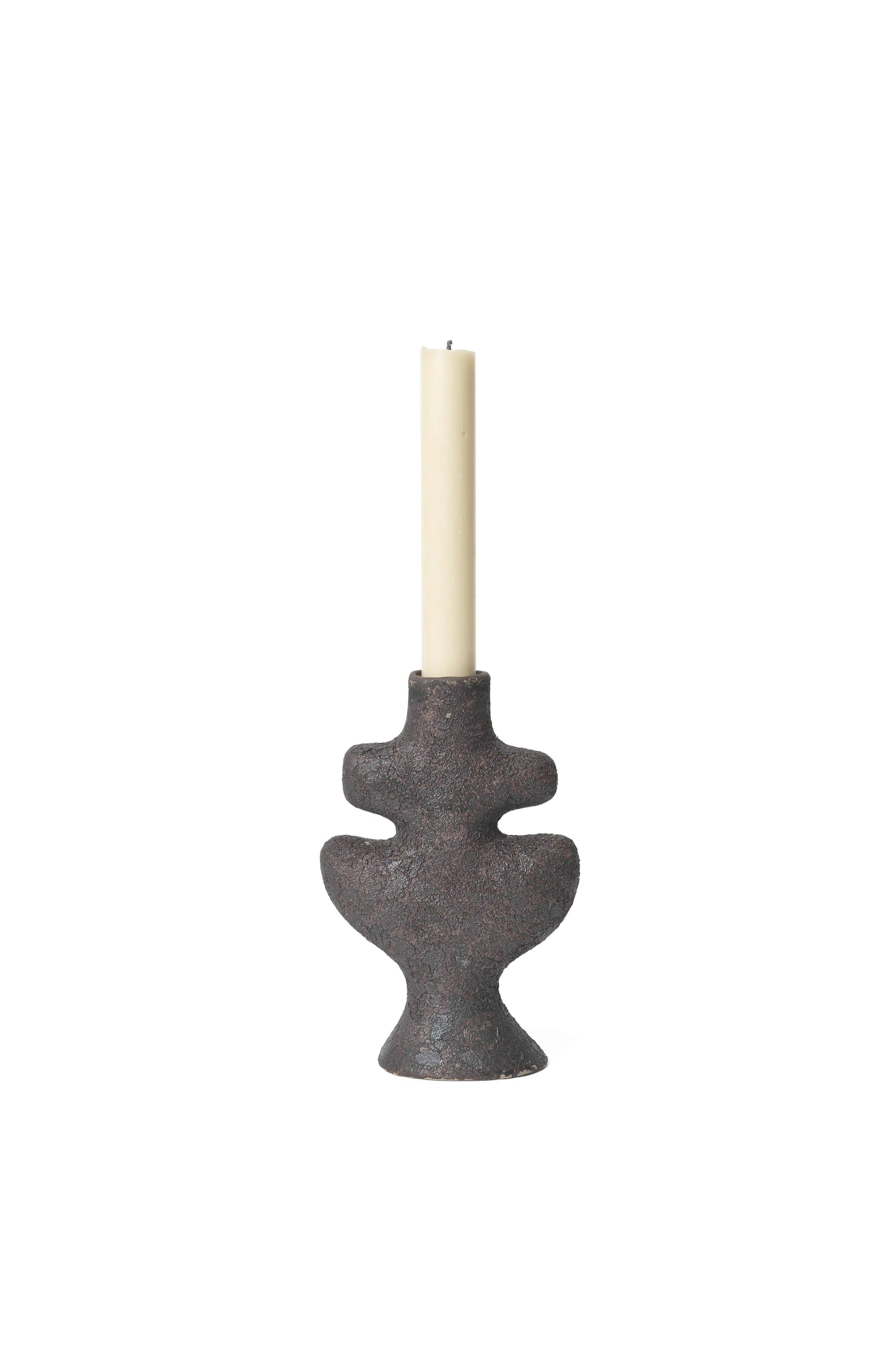 Die Yara-Kerzenhalter kombinieren erdige Farbtöne und eine raue Struktur, was ihnen eine organische Erscheinungsform verleiht. Jedes einzelne der Keramikstücke ist mit einer reaktiven Glasur versehen, die für eine einzigartige und variationsreiche Optik sorgt. Die Kerzenständer sind von den Stein- und Marmorfiguren der Kykladenkultur inspiriert und sowohl in ihrem Ausdruck abstrakt als auch einfach in der Form. Sie können einzeln oder in Kombination mit anderen Stücken aus der Yara-Kollektion arrangiert werden, sodass ein harmonisches und zugleich kontrastreiches Bild entsteht.
