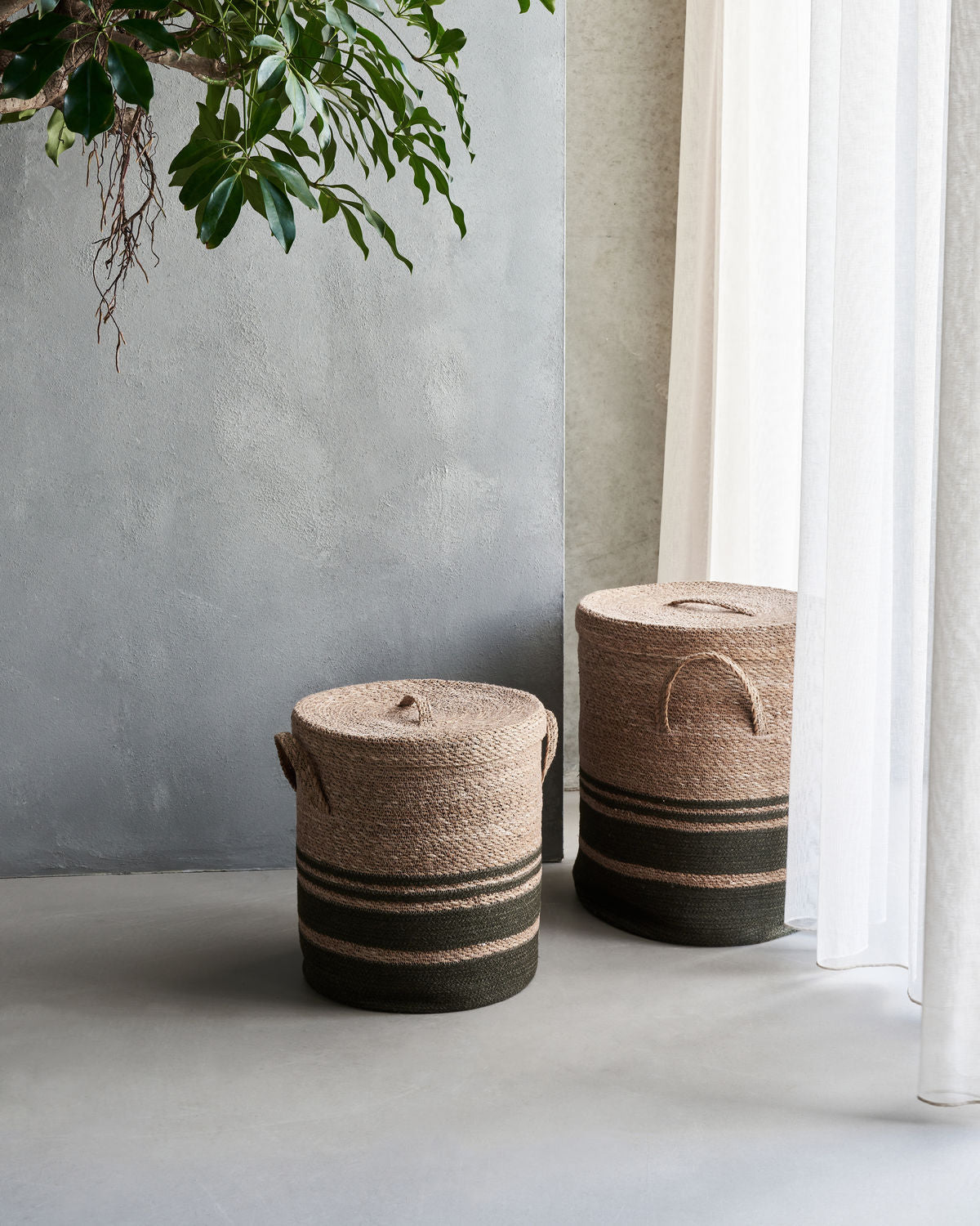 Mit diesen Körben kommt Ordnung in deine Wäsche. Dein Zimmer strahlt Ruhe aus und wirkt aufgeräumt, während die dunkelgrünen Streifen unten den lässigen Look der Laundry-Körbe unterstreichen. Die Körbe eignen sich auch prima zur Aufbewahrung, beispielsweise in der Ecke des Wohnzimmers oder im Schlafzimmer.