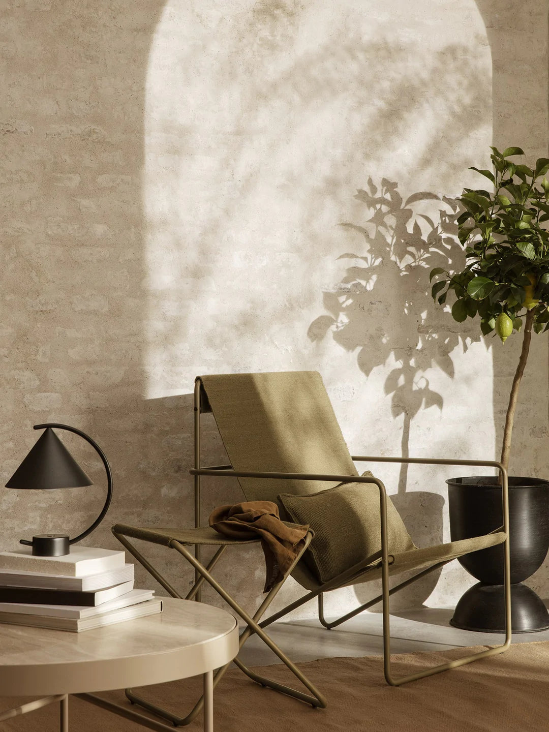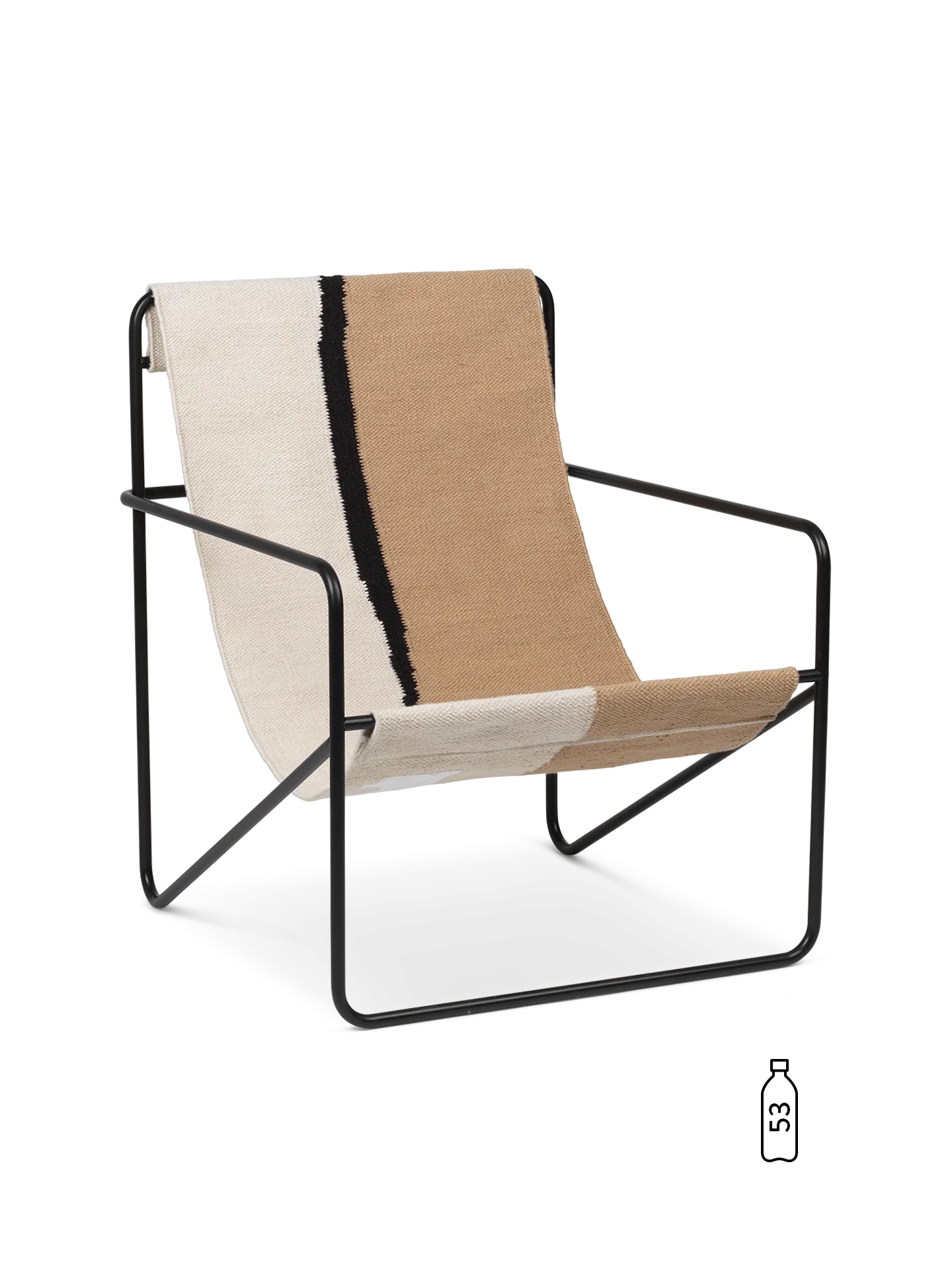 Der Desert Lounge Chair ist ein modernistischer Stuhl mit einem anmutigen Profil. Er besteht aus einem röhrenförmigen Gestell aus pulverbeschichtetem Stahl mit einem austauschbaren gewebten Textilsitz, der vollständig aus gebrauchtem, recyceltem Kunststoff besteht, der zu PET-Garn gesponnen wurde. Der Stuhl ist sowohl für den Innen- als auch Außenbereich geeignet, und das Lounge-Design lädt zum Entspannen sein.