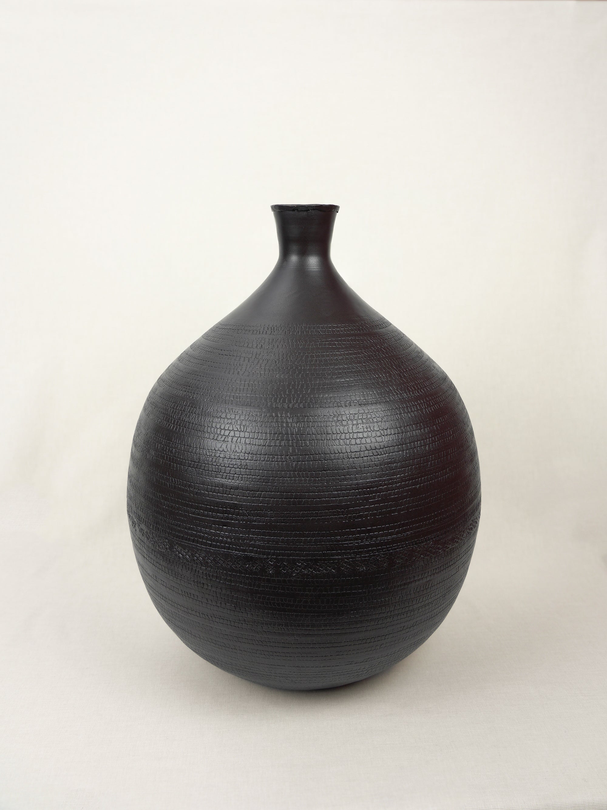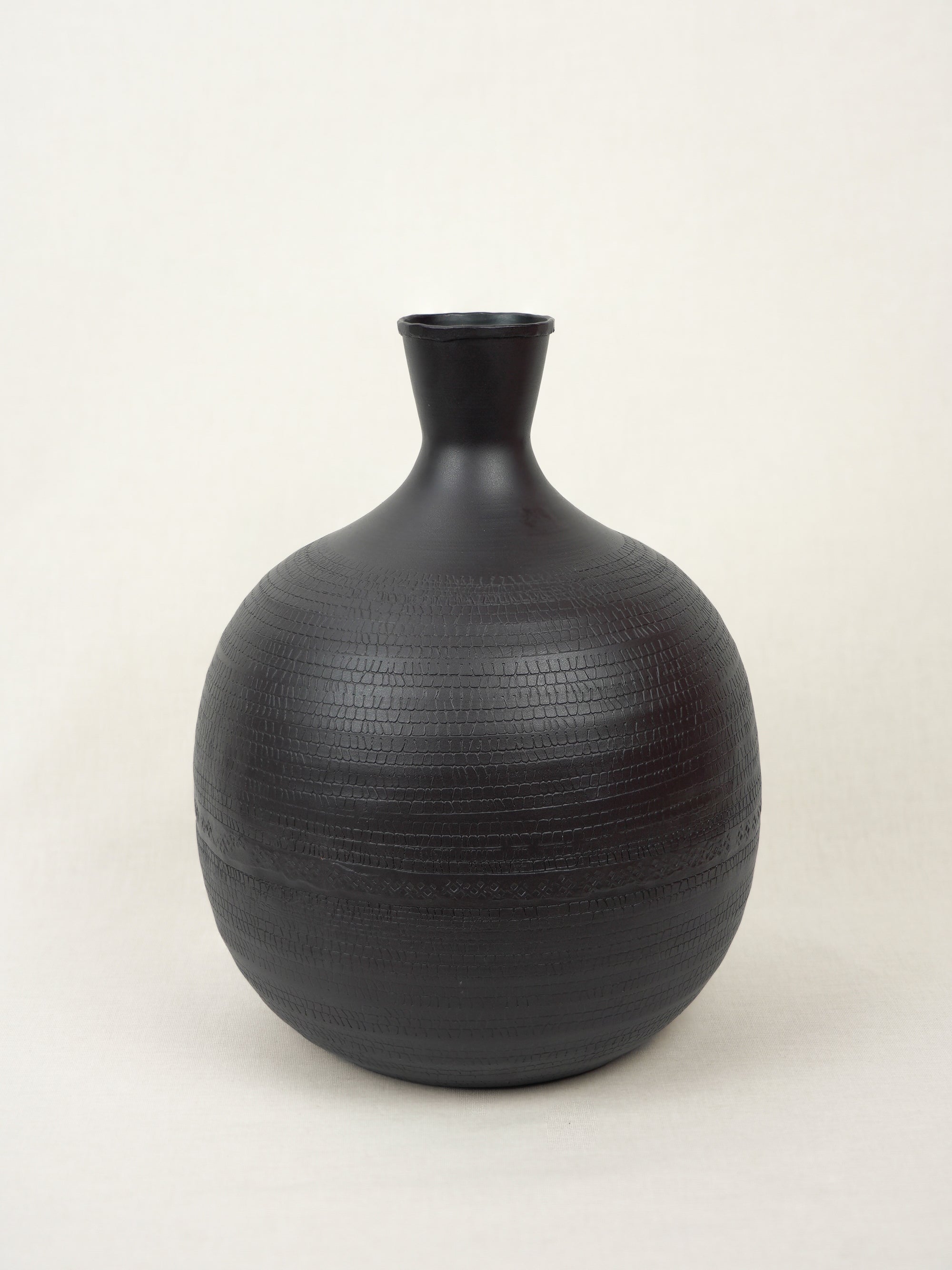 Reena ist eine große Flaschenvase, die deine Lieblingsblumen besonders gut zur Geltung bringt. Das leichte Aluminium wurde mit einer dunkelbraunen Farbe versehen und von Hand mit einem hübschen Oberflächenmuster verziert. Um die voluminöse Form und das filigrane Muster auszubalancieren, wurde der schmale Vasenhals ausgespart, Diese dezente und doch faszinierende Flaschenvase ist ein schöner Blickfänger für deinen Couchtisch oder dein Sideboard – vor allem, wenn du sie mit ein paar Blumen oder Zweigen schmückst. Kombiniere sie mit der kleineren Version, um den schönen Effekt noch zu verstärken. Unregelmäßigkeiten im Muster können vorkommen, da das Produkt handgefertigt ist, und sind fester Bestandteil des Designs.